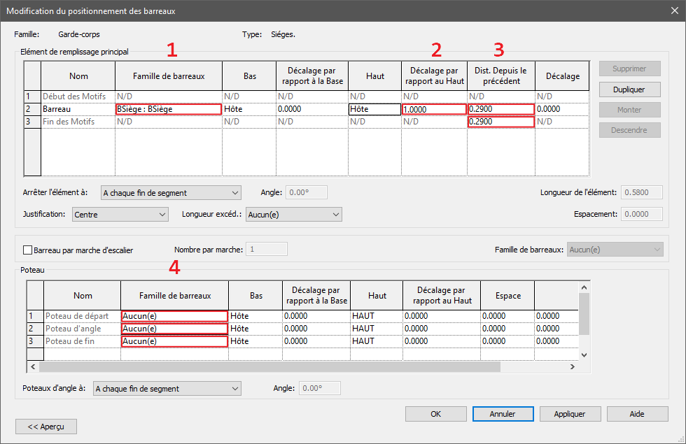 Configuration du composant barreau dans la famille de garde-corps