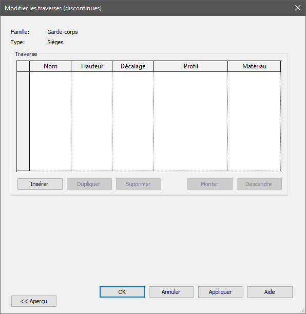 - Cliquez sur Modifier en regard de Structure des traverses : dans la fenêtre qui s’ouvre, supprimez tous les profils présents.